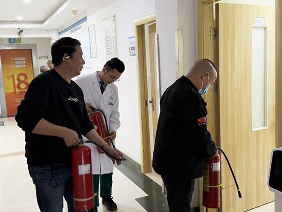 随后,全体人员回到工作岗位开展应急疏散实战演练。警报响起,各楼层负责人迅速响应,严格按照“患者优先、有序撤离、医护断后”的原则,引导就诊患者与职工弯腰低姿、沿指定安全通道快速疏散至医院外安全空旷区域。与此同时,灭火行动组立即奔赴模拟火情点,熟练使用灭火器进行初期火灾扑救,控制“火势”蔓延。整个演练过程紧张有序,全员行动规范,实现了“快速、安全、全员撤离”的预期目标。
